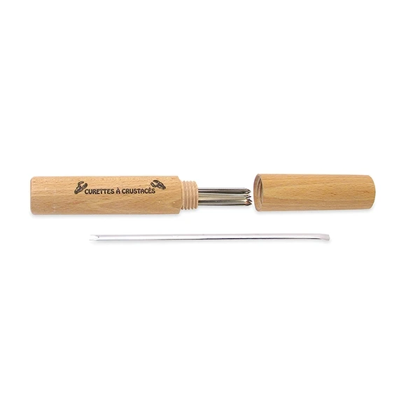 Les 12 curettes à homard en inox contenues dans le fourreau en bois seront très utiles pour déguster des fruits de mer en délogeant la chair dans tous les recoins des pinces et de leur carapace ! Les curettes sont en inox, très solides: ce sont des ustensiles pratiques et élégants. Le fourreau de rangement est en magnifique bois de hêtre. Ainsi, vous ne perdrez aucune des curettes.