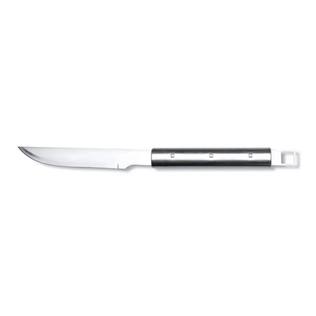 – Une fourchette à viande et un couteau à viande : ces outils sont particulièrement pratiques lorsque vous découpez un rôti ou que vous tournez et coupez des légumes sur le grill, avec une longue manche pour s’écarter du feu. Pour retourner vos aliments, nous vous recommandons d’utiliser la spatule au lieu d’une fourchette, afin de réduire le risque de dessèchement de la viande lorsque les jus s’échappent.