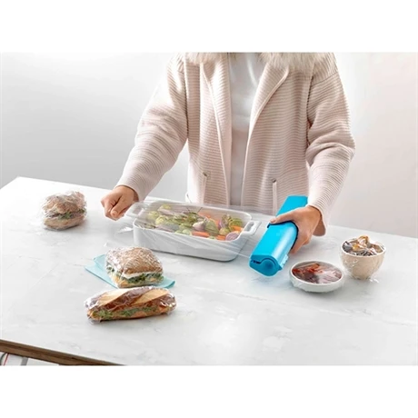 Designé pour un résultat des plus légers et une utilisation ergonomique qui conviendra mêmes aux plus petites mains, vous n’en aurez besoin que d’une pour tenir votre coupe filme alimentaire Betty Bossi tandis que l’autre déroule le film plastique. Ce système vous permettra de le prendre à la volée dans votre cuisine et l’amener où vous voulez pour qu’il reste au plus près des boîtes, plats et aliments à empaqueter. Avec sa lame en acier inoxydable, vous n’avez qu’à appliquer une légère pression pour que le film soit coupé de manière nette et précise. Et pour éviter de perdre le début du rouleau, une griffe récupérera le bout du film à chaque découpe : à la prochaine utilisation, vous n’aurez plus qu’à saisir le bout du film attaché à la griffe pour recommencer.
