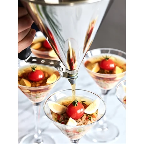 L’entonnoir à piston de Buyer vous permet de décorer vos assiettes, garnir vos mignardises et choux pâtissiers, remplir vos verrines avec précision, etc. Vous pouvez régler le débit de l’entonnoir directement sur la poignée, pour un dosage précis.