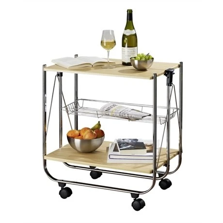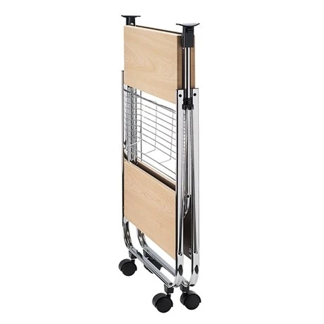 Grâce à ses 4 roulettes, la desserte transporte sans la moindre difficulté et avec une bonne stabilité votre petit-déjeuner ou vos boissons. Pratique, elle replie d’un seul geste pour un rangement gain de place et peut servir en tant que table d’appoint dans la cuisine ou le séjour.