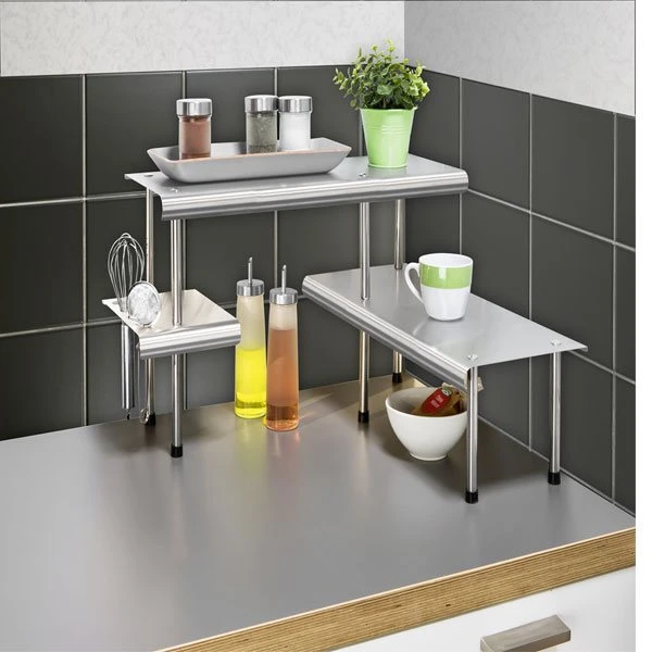 Cette étagère d’angle Massivo Trio est conçue pour occuper un angle de votre cuisine en rajoutant du rangement. Elle offre beaucoup de place en plus, grâce à ses 3 étagères en acier inoxydable très pratiques pour poser vos épices, vos herbes, votre thé ou tous autres objets dont vous avez besoin au quotidien en cuisinant ! Sa taille permet de ranger des objets dessous, elle prend donc peu de place. Un support est spécialement conçu pour disposer vos ustensiles de cuisine. Parfait pour une cuisine bien ordonnée ! Son design est sobre, élégant et moderne pour s’adapter à tous les intérieurs.
