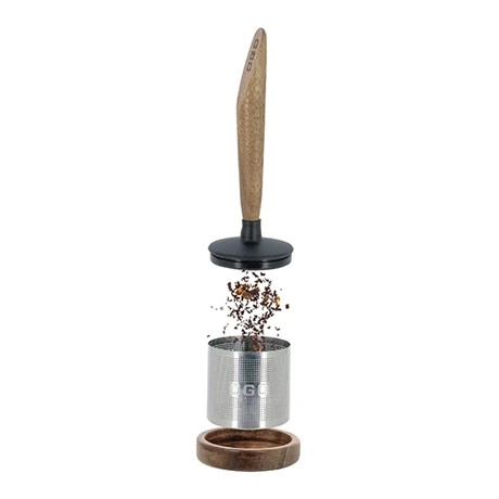 En bois de hêtre au style unique et authentique, il est muni d’un filtre en acier inoxydable qui infuse doucement sans laisser de dépôts les thés en vrac : thé vert, blanc, noir, aux agrumes, infusions, tisanes…