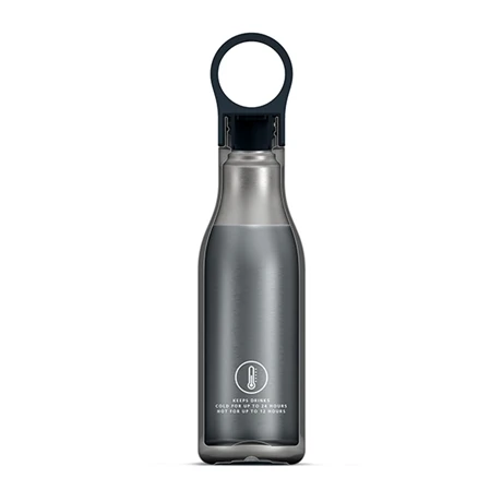 Cette bouteille en acier inoxydable 18/8 d’une contenance de 500 ml dispose d’une conception à double paroi isolée sous vide avec une couche de cuivre réfléchissant la chaleur. Nomade et réutilisable, elle garde votre café chaud jusqu’à 12h et votre eau fraiche jusqu’à 24h. Afin de conserver la température de la boisson plus longtemps, il est recommandé de verser à l’intérieur de l’eau bouillante ou froide puis de la vider pour la remplir ensuite avec votre boisson. Ultra pratique, la bouteille isotherme Loop se distingue par son bouchon qui se verrouille le long du goulot devenant ainsi une partie intégrante du corps lui-même. Il ne vous gêne pas quand vous buvez et vous ne risquez plus de l’égarer. Le bouchon intègre aussi une boucle servant de poignée de transport pour y glisser vos doigts ou de point d’attache pour y clipser un mousqueton. Hermétique sans aucune condensation, son format adapté trouvera rapidement une place dans vos sacs dans tous vos déplacements.