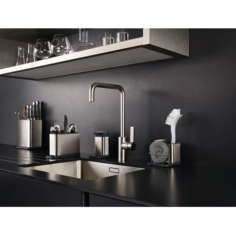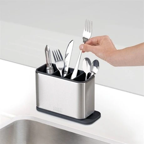 L’égouttoir à couverts en inox Surface vous permettra d’égoutter et faire sécher vos couverts au bord de votre évier. Le compartiment principal est divisé en 3 parties pour y mettre vos grands couverts. La dernière partie est moins profonde pour les petits éléments comme les petites cuillères. Le socle incliné est rainuré pour récupérer l’excédent d’eau avant d’être vidé par le bec verseur. Démontable, vous le laverez facilement à la main. Très élégant, il donnera une touche de modernité à votre cuisine.