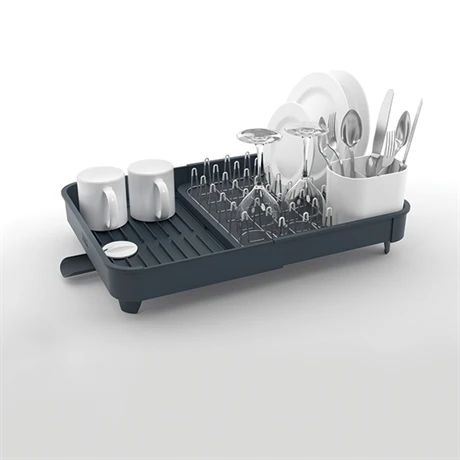 L’égouttoir extensible blanc Extend™ de Joseph Joseph vous permet d’augmenter facilement et rapidement votre espace pour égoutter votre vaisselle. Sa taille peut presque doubler si besoin pour égoutter la vaisselle d’une seule personne ou bien de toute une famille. Un bec verseur intégré évacue l’eau en excédent, mais celui-ci peut être fermé et rangé pour retenir l’eau.