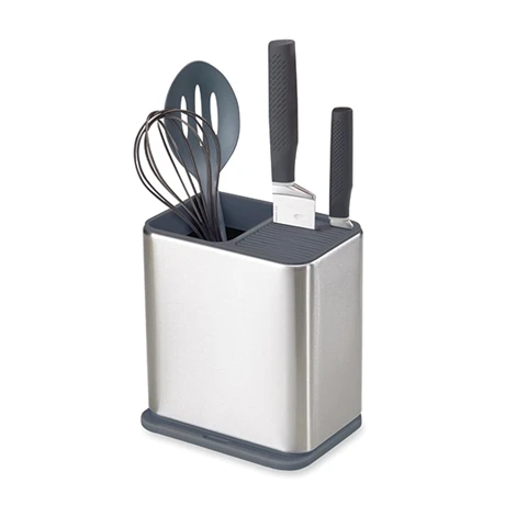 Le pot ustensiles et couteaux en inox est pratique pour une cuisine bien organisée. Divisé en 2 parties, vous pourrez ranger vos ustensiles d’un coté dans le grand compartiment. L’autre coté est composé de fentes pour stocker vos couteaux. Un repose cuillère est intégré au socle ce qui en fait un accessoire fonctionnel à avoir dans sa cuisine. Démontable, vous le laverez facilement à la main. Très élégant, il donnera une touche de modernité à votre cuisine.