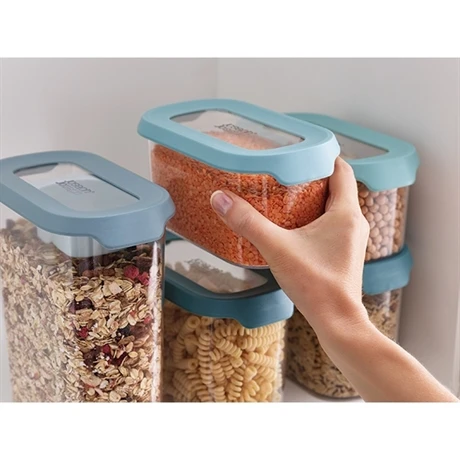 L’ouverture est facilitée grâce à une languette sur le couvercle, de plus les couvercles sont hermétiques pour une meilleure conservation. Fournies avec une pelle à main pour attraper facilement vos aliments. Idéales pour organiser votre placard, les boites peuvent s’empiler afin de prendre moins de place. Taille des boites : (2 x 900 ml, 2 x 1.3 L, 1 x 2 L)