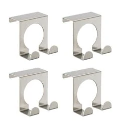 Ce lot comporte 4 crochets de porte Wenko. Les crochets de porte doubles en acier inoxydable mat vous permettent de gagner de l’espace dans la cuisine, la chambre ou la salle de bain pour ranger vos torchons ou serviettes. Ils se suspendent simplement à la porte de vos placards sans besoin de percer ni visser et sans gêner la fermeture des portes.