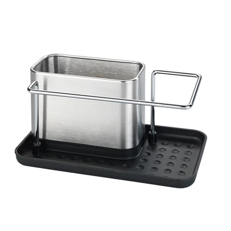Rangez votre espace de nettoyage grâce à l’organisateur pour évier inox. Conçu de manière astucieuse cet organisateur prévoit tous les espaces nécessaires pour ranger votre éponge, liquide vaisselle, paille de fer…