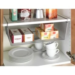 A suspendre sur une étagère, ce panier résistant en métal permet de ranger des vêtements, du linge, de la vaisselle, des aliments en offrant un espace de rangement supplémentaire.