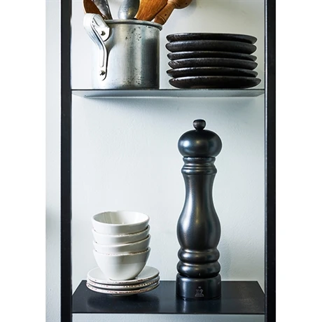 Enseigne experte dans la conception de moulins à épices, l’entreprise française Peugeot s’est notamment distingué par son modèle emblématique Paris Chef. Choisi par certains des plus grands chefs dans le monde entier, ces moulins ont prouvé leurs performances haut de gamme et ont réussis à intégrer les restaurants les plus raffinés par leur esthétique élégante. Aujourd’hui, Peugeot rend hommage à cette esthétique en déclinant la gamme avec des versions en inox, dont ce moulin à sel Paris Chef carbone 22 cm qui est fait d’une structure en inox avec une finition en carbone d’inox brossé avec dépôt d’une peinture anthracite laissant apparaître le métal.