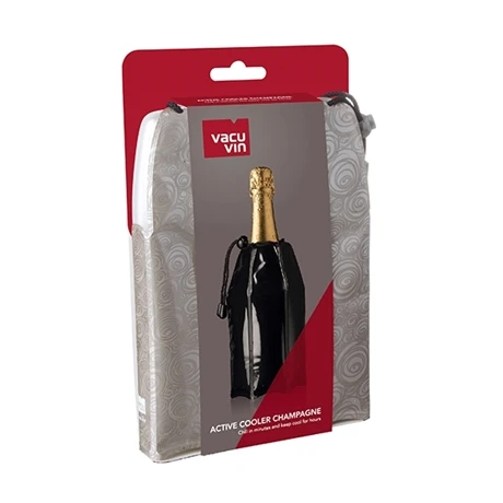 Ses 6 compartiments remplis de gel cryogénique absorbent le froid et le restituent progressivement. Ainsi, ce pochon reçoit une bouteille et la tempère en quelques minutes. Replacé ensuite dans le congélateur pour rafraîchir une autre bouteille, ce refroidisseur à champagne Platinum possède un lien qui se resserre au niveau du goulot de la bouteille pour l’entourer de fraîcheur.