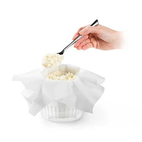 Le set à fromage frais maison vous permet de réaliser vous-même votre fromage, assaisonné à votre goût ! La presse est simple d’utilisation; elle donnera à votre fromage la juste consistance ! Le set est composé d’un plateau avec une cloche de service, d’une presse et de 5 mousselines réutilisables. Très résistant, le set est durable. Vous impressionnerez vos invités et votre famille en leur présentant des fromages faits par vous-même.