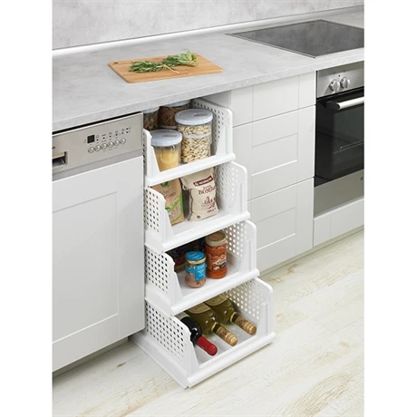 De 18,5 x 33,5 x 43 cm, un casier vous permet de ranger de nombreux produits d’épicerie salée ou sucrée : bocaux, conserves, pâtes… Utilisez ces rangements à votre convenance et empilez-les pour organiser votre cuisine facilement.