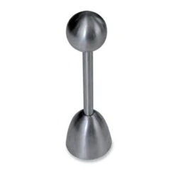 Le toqueur à œuf découpe un cercle net dans la coquille d’un œuf à la coque ou dur, sans aucun éclat. Très simple d’utilisation, il suffit de le poser sur le haut de l’œuf, de tirer le piston et de le relâcher. Inox.